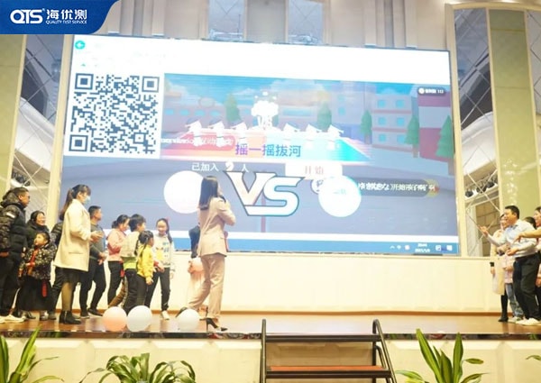 第二輪游戲叫做“拔河”,比賽分紅藍(lán)兩隊進(jìn)行,大家通過搖動手機來控制拔河的力度。團(tuán)結(jié)的力量,超乎你的想象。